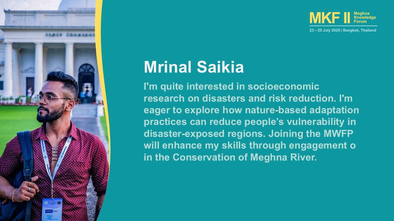 Contributing to development of NbS strategy for climate resilient development of the development of Cachar and Sribhumi districts in India, and Sunamganj district in Bangladesh. The are leading the design of youth forums and participating in regional dialogues such as the Meghna Knowledge Forum and Water and Peace Seminar.